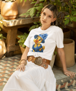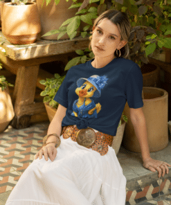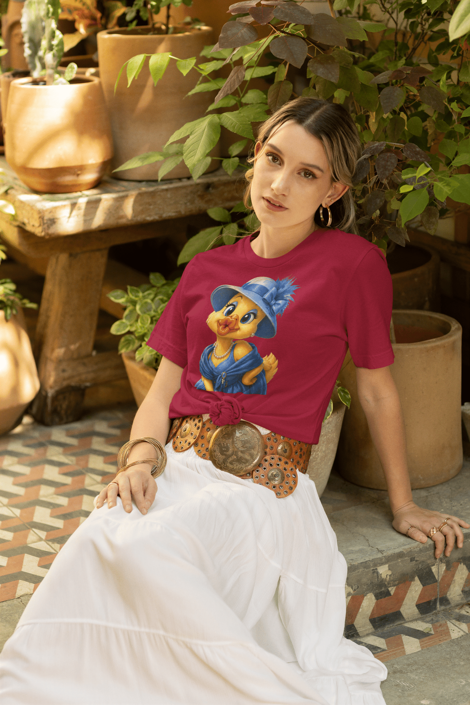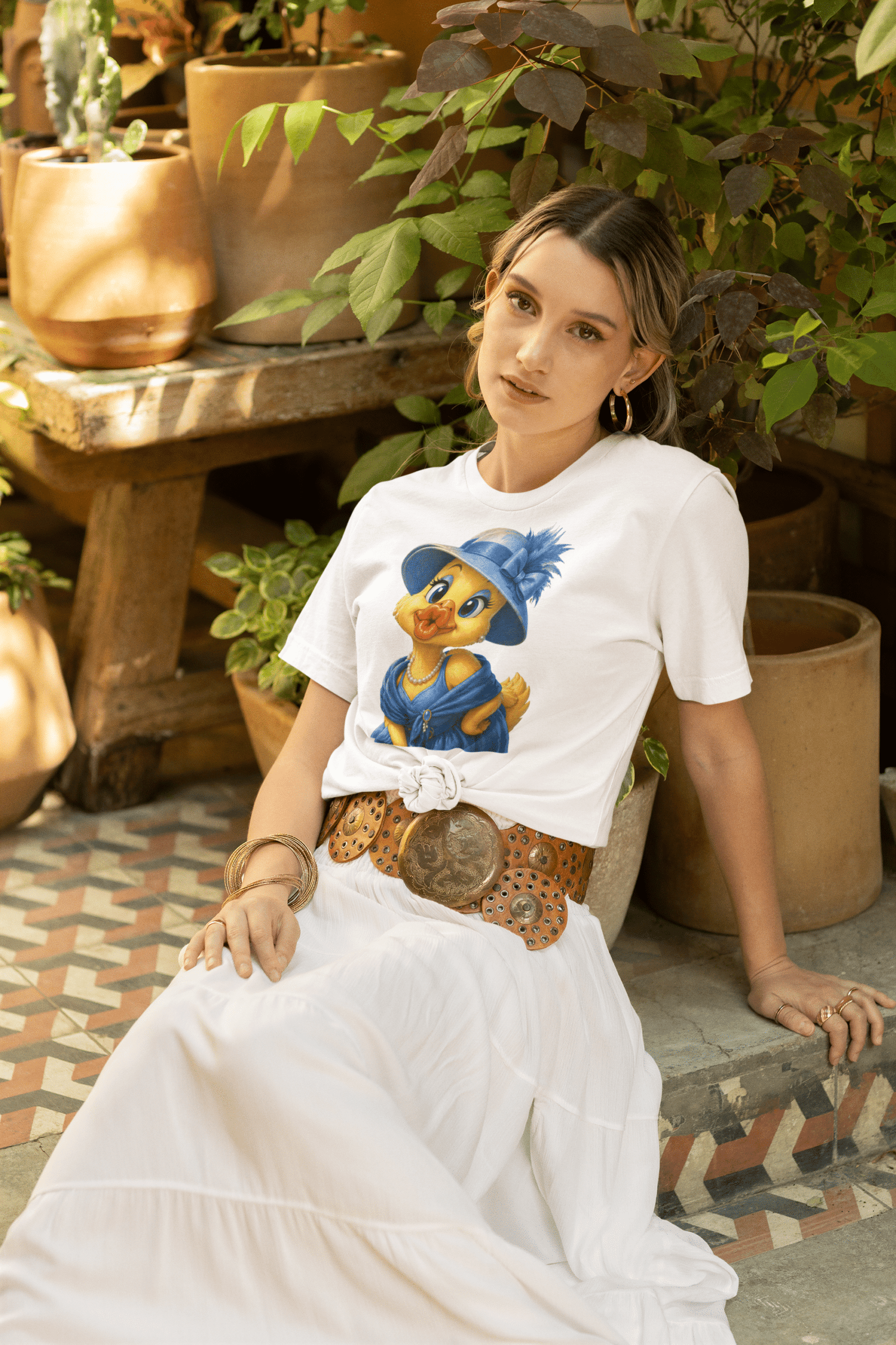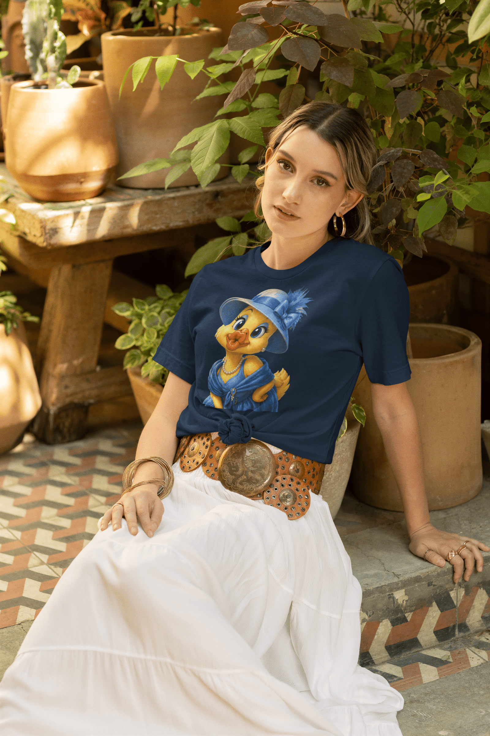 Kiss My Beak Vintage Chic Duck Tee — Cute Blue Dressed-Up Duck Graphic T-Shirt